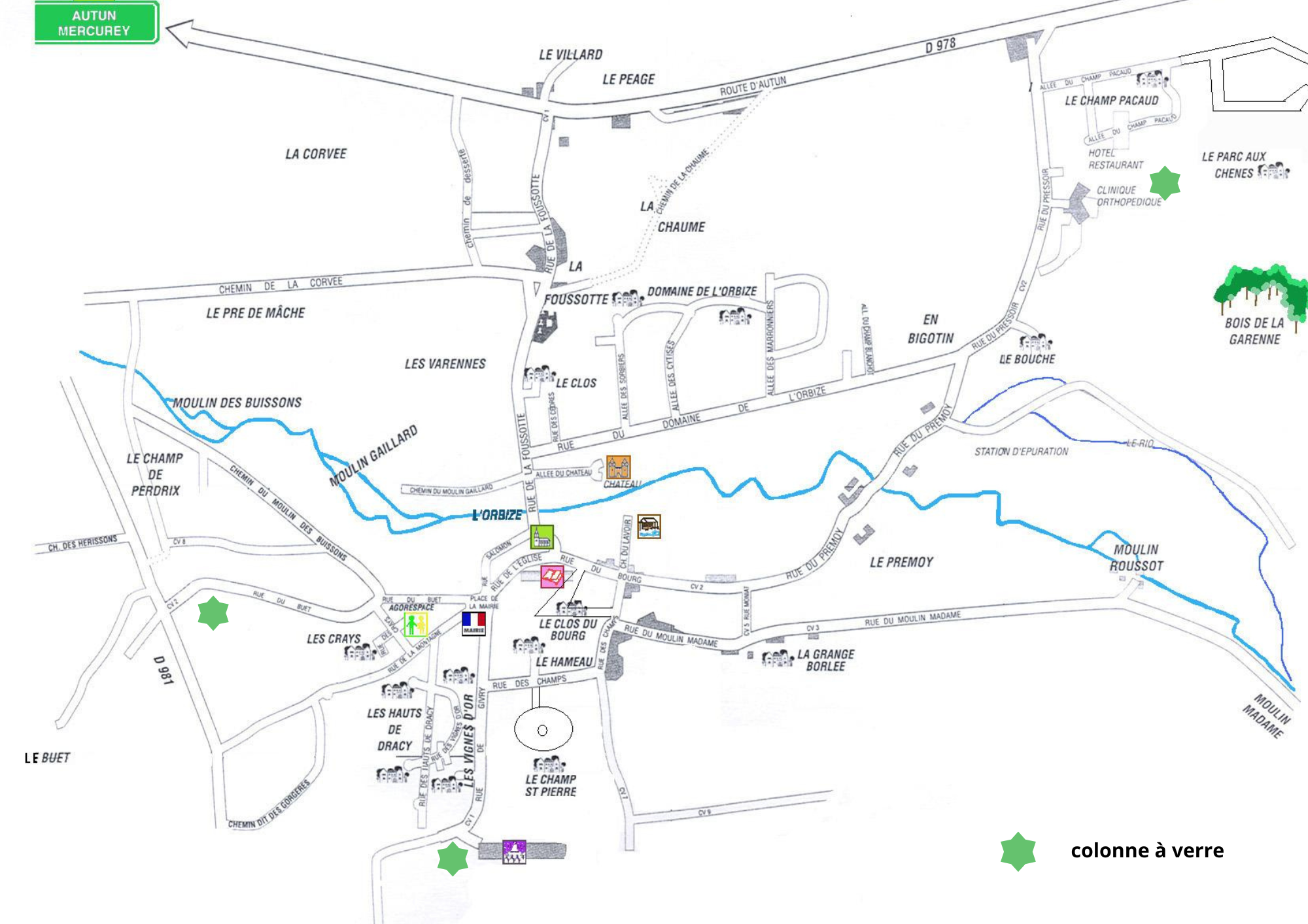 Plan des colonnes à verre